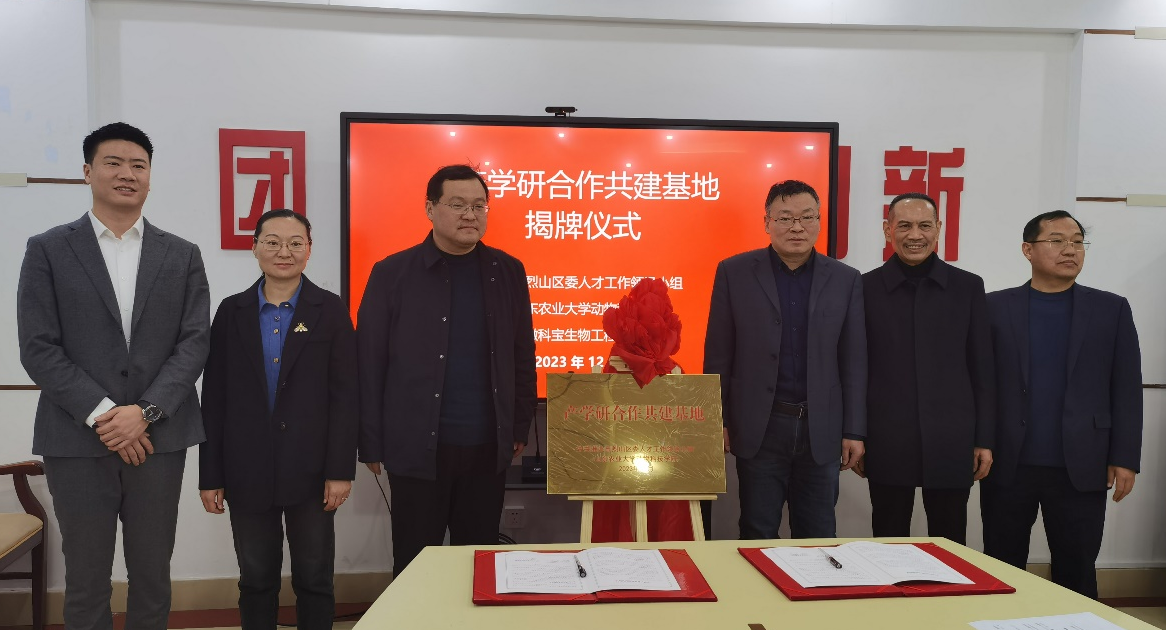 2023年11月26日,山东农业大学动物科技学院(山东贝类产业技术体系病(敌)害防控岗)与淮北市烈山区(安徽科宝生物工程有限公司) “产学研合作共建基地”揭牌仪式在泰安举行。动物科技学院院长姜世金、淮北市烈山区委副书记李响参加活动并为“产学研合作共建基地”揭牌。