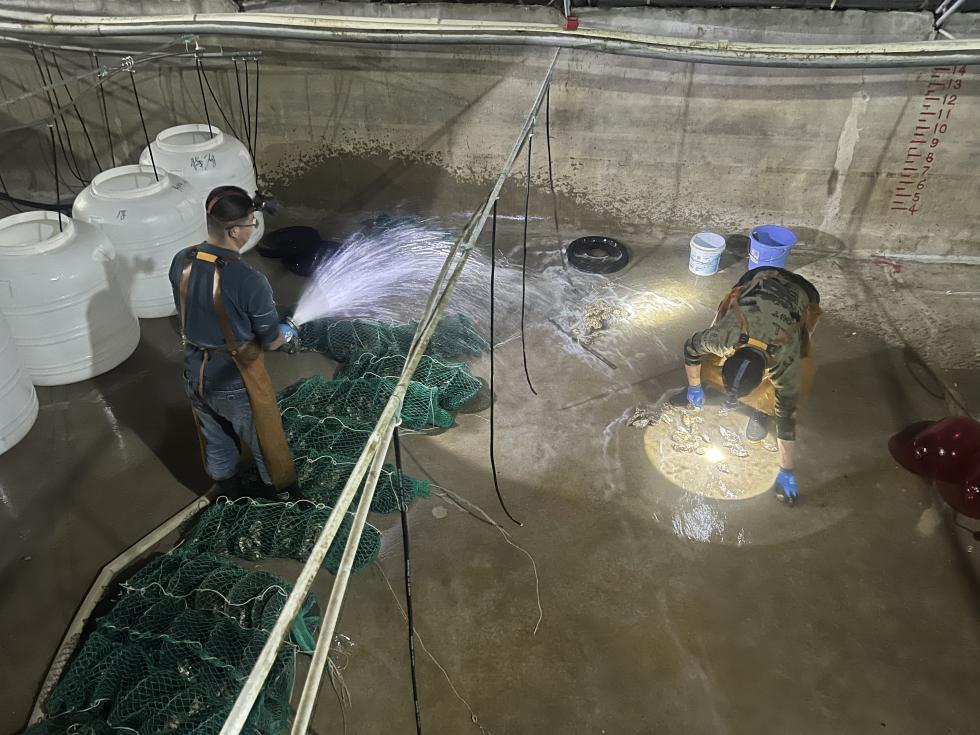 由省贝类体系威海站(乳山市海洋经济发展中心)组织山东跃涛海洋科技有限公司于2021年启动了基于陆基车间或池塘的“可控环境下牡蛎品质提升关键技术”科研攻关,2023年又邀请中科院海洋研究所张国范研究员团队加盟组建了联合技术攻关团队。攻关团队在国内外尚无可参考的成熟技术经验的情况下,开启了原创性研究,经过近4年的牡蛎摄食习性、饵料类型、促消化益生菌、人工代用饵料制备等基础研究和四十余轮微型、小型试验,可控环境下牡蛎品质提升关键技术在实验室阶段取得关键突破。技术攻关团队通过模拟牡蛎在自然环境下的摄食习性和饵料类型,采取鲜活单胞藻+植物性代用饵料联用的投喂方式,可在10-15天内将牡蛎品质的最关键指标出肉率平均提升约15%。
